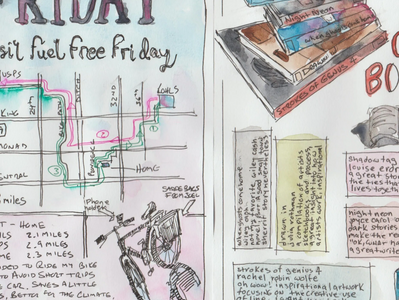 The Format - Anything goes. Sketch, draw, paint, scribble, use whatever medium you want. Fill the pages with life. If you want to take a photo of something you have painted and tape it to the page, go for it. Digital artists or photographers, tape a printout of your work to the page and tell us what it means to you. But don't be afraid to add some sketches or scribbles or notes. Show us your art, write a poem, tell a story, or tell us about your day. Random words. Do all those things, you have two full pages. If you are new to sketch booking, go online for inspiration.