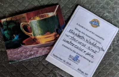 Drop in at Crooked Line Studio (1206 24th St W) during Open Art Fridays - 9 to noon to create the little works of art or drop off finished pieces. We have a box on location for this continuing BAA project. Community members and guests from out-of-town alike were delighted with our recent shower of tiny art to promote the "Fresh Art-Montana Made" show at Gainan's. Backs can be downloaded here - see above - Sleeves are available at most BAA events. Let's replenish the stock for our next art blitz.
